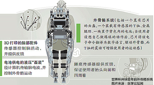 三是通过某种头戴装置监测大脑的神经信号,机械外骨骼通过对该信号的解译,理解人的运动意图,进而完成相应运动。本届世界杯上帮助瘫痪青年完成开球的机械外骨骼就属此类。