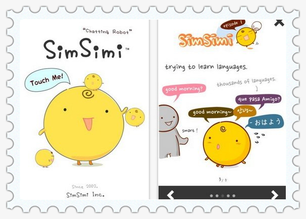 如果和你说Simisimi,你可能没有听过,但如果让你看这只黄色的小鸡,你肯定有印象。没错,这就是大热的聊天软件——Simsimi。这款外观可爱的聊天软件是由一家韩国公司开发的,内置了英文、韩文、法文、西班牙文以及中文等语言,使用者只要在对话框输入语言,小黄鸡Sim就会和你进行对话。当然,这只小黄鸡可是紧跟潮流的,当心它用时下最流行的俏皮话答复你哦。
