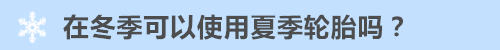 不建议我国东北以及北部大部分地区的车主在冬季使用夏季轮胎。冬季轮胎是为提升车辆在冬季路面条件(有霜冻的干地、湿地、积雪路面)下的行车安全而特别设计的。而夏季轮胎在此种路面条件下的安全性较低。