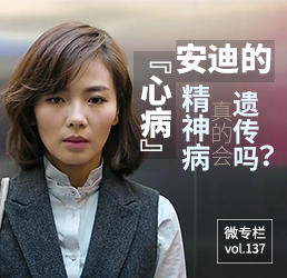 导语:最近大热的全民电视剧《欢乐颂》第一季圆满收官,暂时的大结局也引发了观众对下一季剧情的无限猜想和期待。剧中的安迪是典型的高智商女精英,她的身世之谜也是剧情发展的主线之一。当得知自己的身世后,安迪一直担心自己会得精神病,深深困扰,也不得不与奇点大叔痛心分手。好在编剧在剧尾给安迪埋下新的感情线,究竟在下一季安迪能不能战胜“心病”,收获幸福呢,这个就不剧透了。本期《微专栏》,我们还是一起聊聊精神疾病还有遗传的那些事吧。