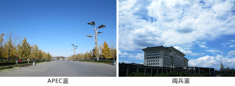 而2014年APEC期间已处于秋末冬初,北京地面已经开始吹北风,地面的水汽条件就比较差。因此,在污染排放控制的情况下,天空成云条件比较差,就会展示出整体的蓝色。这种天气在气象上来说就是“晴”,大家常说的“秋高气爽、万里无云”就是对这种天气的典型描述。