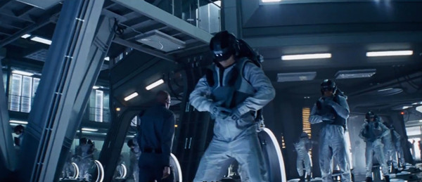 为什么没人开发出一款可以用自然身体动作操作的VR游戏呢?首先,这不仅仅是软件开发的事。开发者和玩家需要有硬件设备的支持,比如一套先进的动作捕捉设备或者可穿戴的动作传感器,它能识别玩家的肢体动作,将其作为游戏参数输入并控制虚拟角色。如果想让虚拟角色做出玩家本人的表情,我们还需要一个先进的面部识别软件和相应的传感装置。《头号玩家》里的人也要依靠作者幻想出的设备进入虚拟世界: