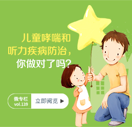 导语:马上就是“六一”儿童节了,《微专栏》提前祝各位小朋友和大朋友节日快乐!关爱儿童健康人人有责,在儿童节来临之际,北京清华长庚医院的医生们“做客”《微专栏》,聚焦儿童哮喘病、分泌性中耳炎、新生儿听力筛查等相关问题。家长朋友以及准妈妈、准爸爸们赶紧来涨涨知识吧。