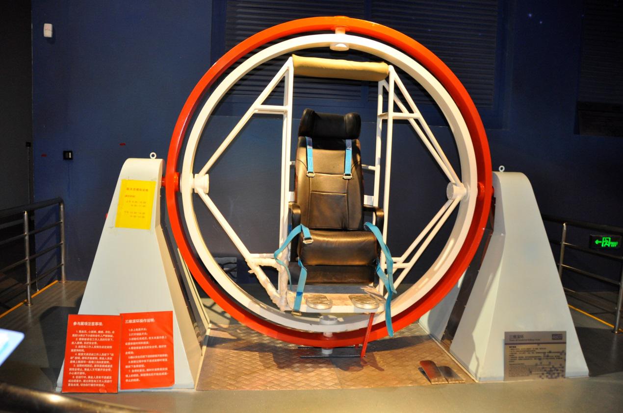简介:这件展品以载人航天体能训练器材为原型。该训练器是为了训练宇航员在飞船发生故障出现二自由度或三自由度旋转时的适应能力,训练宇航员的自我平衡能力和旋转环境下的操作能力。要想当宇航员,需要能够“战胜”这个三维滚环哦!
