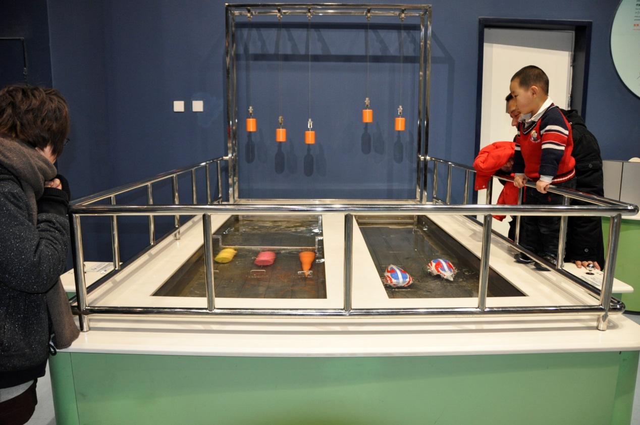 简介:该展品设计了一组横截面积和重量相等,但具有不同外形的模型(形状选择来源于生活),通过观察不同外形的模型在水流中运动受到不同阻力的情况,就可以了解有关流体阻力的科学知识。