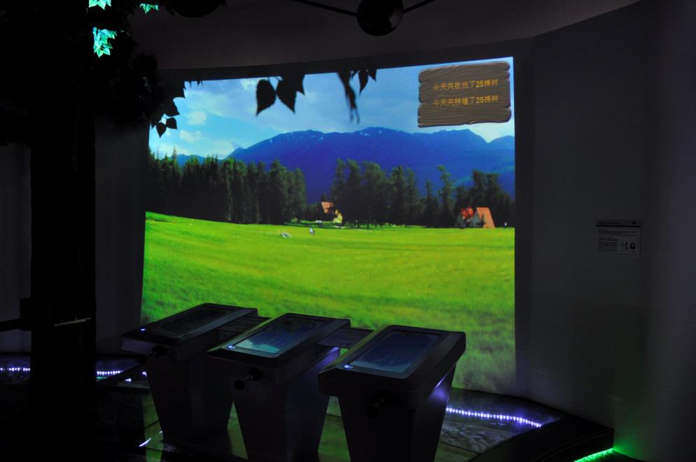 内容:树木数量的改变会对周围环境产生重要影响,通过该展品的互动体验,对比、感受植树与保护生态环境的不易。