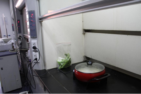 01.取样方法:将锅和菜清洗干净之后,加入自来水,并放入某品牌清汤火锅底料,待煮沸开锅时,进行第一次取样。并分别在之后的0.5小时、1小时和1.5小时继续取样。