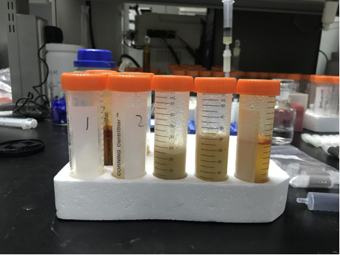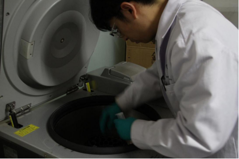 04.离心完成后,将样品取出,并提取出液体,固体部分扔掉。