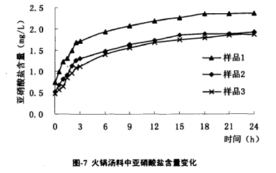试验项目:清汤火锅在不同时间段内亚硝酸盐含量的变化