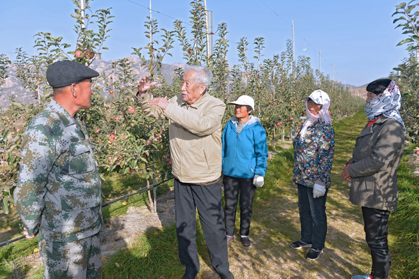 2017年10月,束怀瑞在山东省五莲县指导果树生产 图片由作者提供