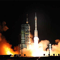 图9.长征二号F型运载火箭点火,神舟七号飞船在酒泉卫星发射中心升空