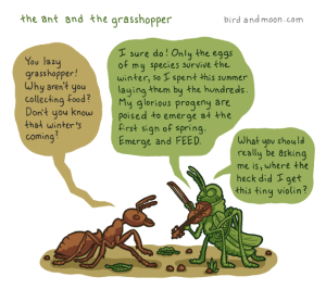 A:懒草蜢!你为什么不收集食物?难道你不知道冬天要来了么?
