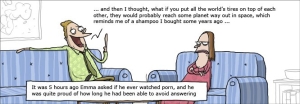 “……然后我就相,如果你把全世界的轮胎一个一个的垒起来,它们最后的高度可以够到太空中的其他天体,这让我想起了早些年买过的一瓶洗发水……”