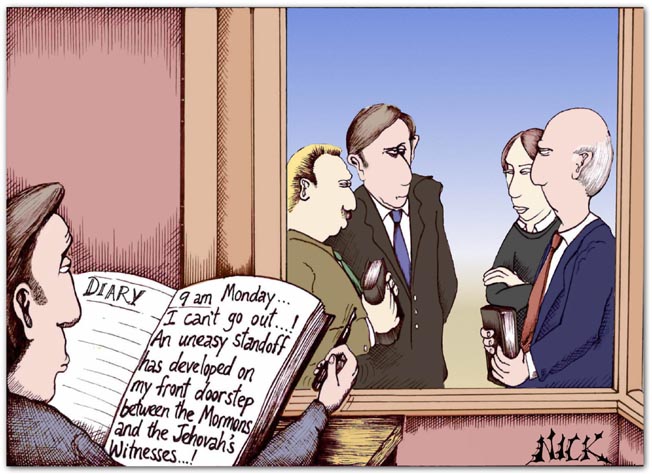 我不能出外面去!在我的前门那里,摩门教徒和耶和华的信徒之间有着深深的鸿沟。