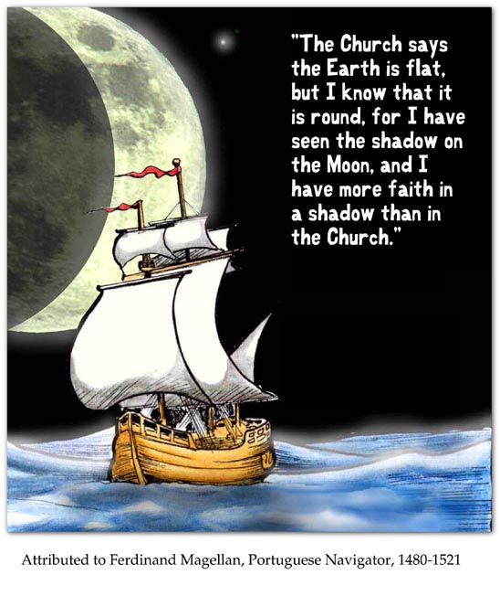 教会说地球是平的的,可是我知道地球是圆的。我看到月亮的影子,我对影子的信念都比对教会的强。