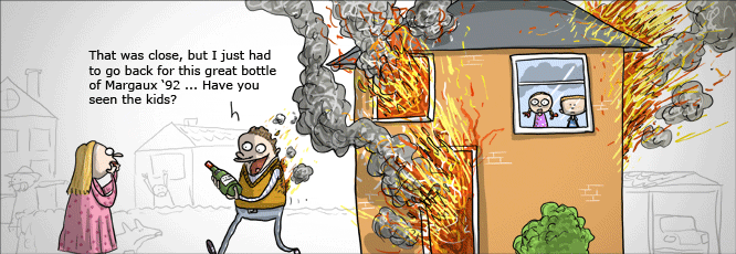 “火势很大,但我还是冲进去取出了这瓶珍贵的margaux’92葡萄酒,对了,你看见孩子们了吗?”