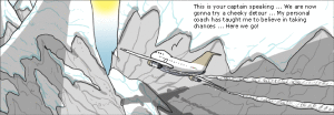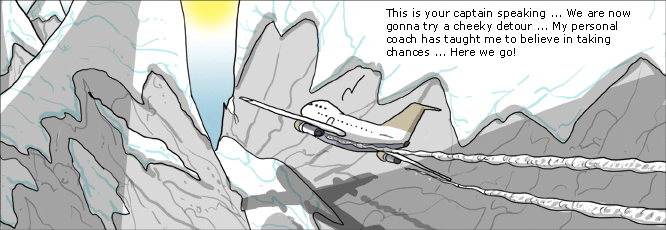 “我是机长,现在我们正在尝试一条冒险的弯路,我的私人教练曾教导我,要相信机会,那么让我们前进吧!”