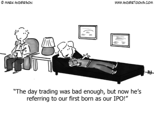 交易日就已经够烦人的了,可是,现在,我老公竟然把我们第一个宝宝的诞生叫做”IPO“(证券术语,第一次公开发行)。