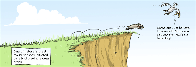 “加油,相信自己!你当然能飞,你可是一只旅鼠!”