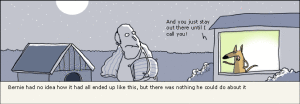 伯尼不知道为什么总是会这样,但他对此没有任何办法。“你给我呆在外面,直到我叫你!”