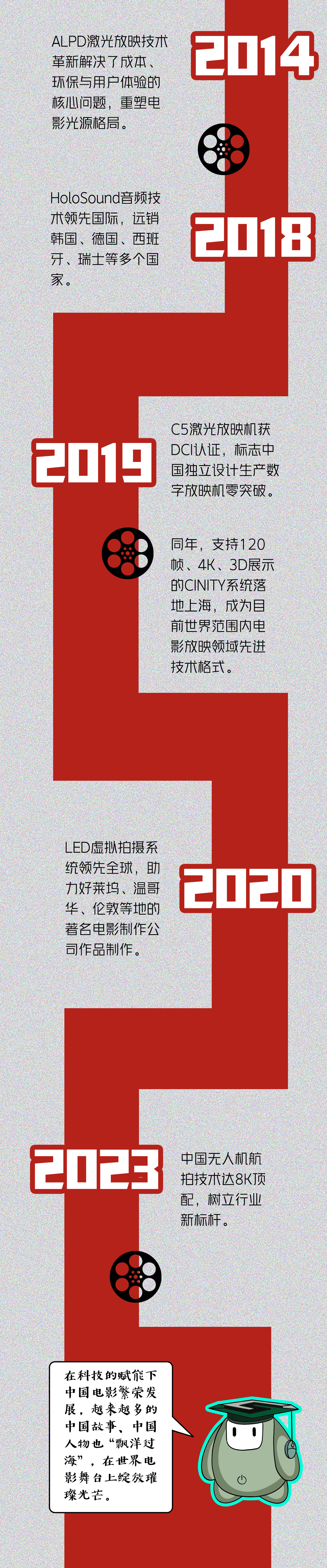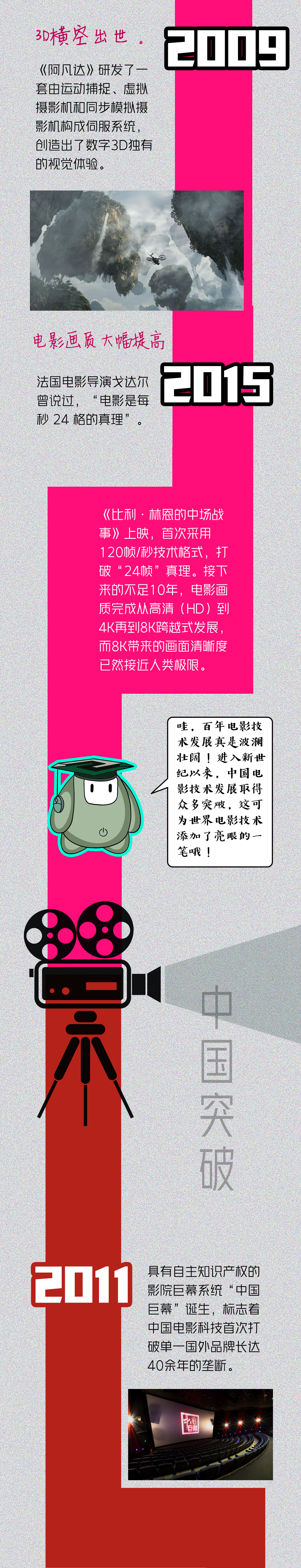 电影的发展离不开科技的支持,从黑白、无声的时代到彩色、有声的时代,从装置特效到数字特效,一部脍炙人口的电影作品背后往往蕴藏着科技突破。中国电影科技后来居上,带领着中国文化走出国门,将中国的故事讲给更多人听。