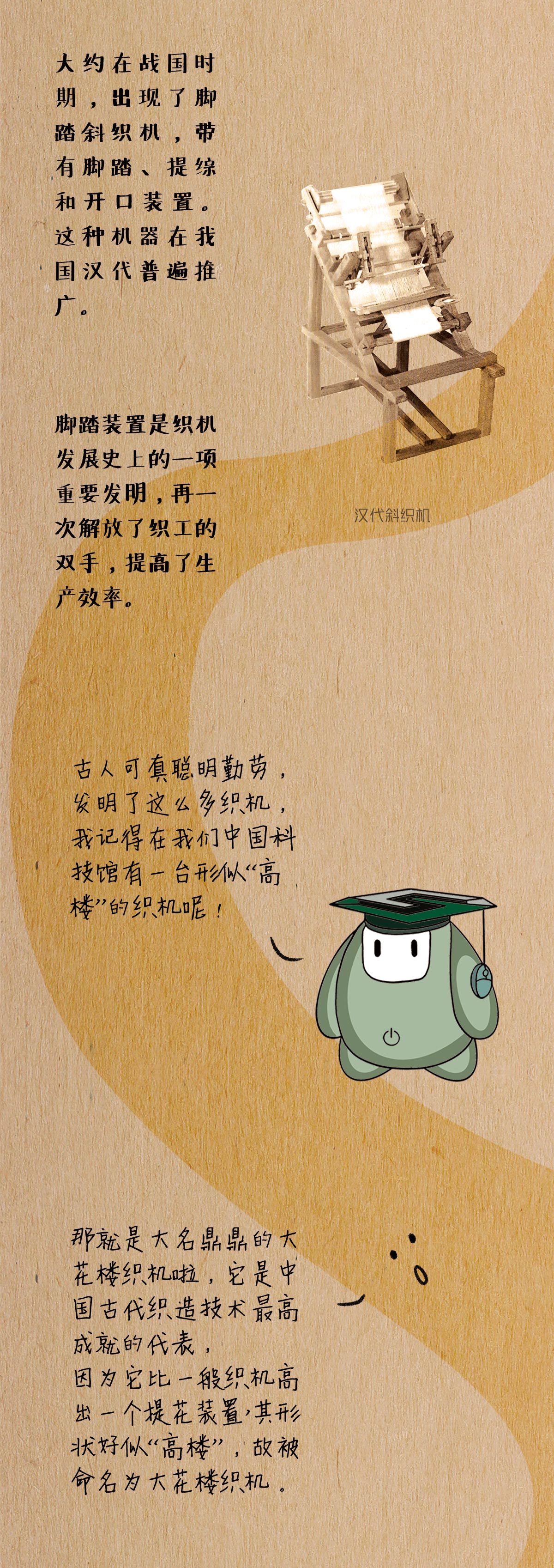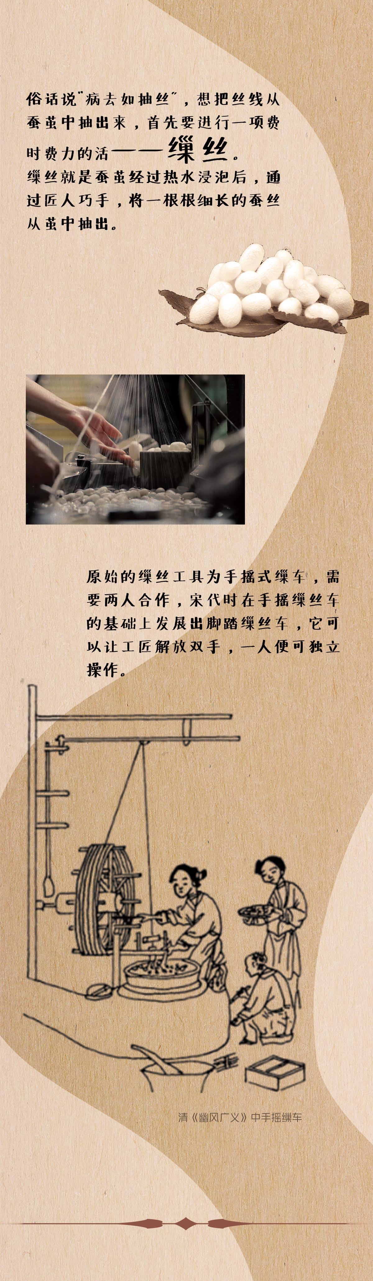 “唧唧复唧唧,木兰当户织”。早在远古时期人类就开始尝试纺织,古代中国也涌现了许许多多的、走在当时时代前列的纺织机械和纺织技术。缫丝机、提花机还有丰富多彩的染料,让中国丝绸拥有极高的质量,受到了世界各地人民的欢迎。