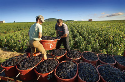 法国博若莱地区进入葡萄收获季节,这些采摘的葡萄将用于酿造著名的博若莱葡萄酒