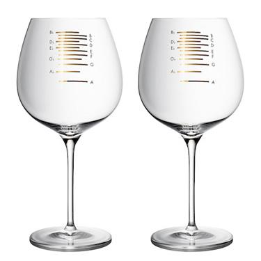 奥地利现推出一款音乐葡萄酒杯,用一只手指沿着酒杯边缘敲击,即可演凑出美妙的音乐。这款无铅水晶葡萄酒杯杯身刻有金色的刻度,对应不同音节,包含八度音阶的12乐音音节,从降A到G。