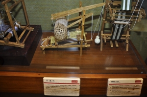 竹笼机是少数民族创造的一种提花机,早在宋代已存在。竹笼机体积小,结构简单,操作方便,在提综机构上主要以少蹑来控制多综的原理,在提花机构上,采用竹编花本,织作器具有引纬木梭、竹制张口器和纹刀。最大的特点是将竹编的环式花本挂在一只大竹笼上,花本中的提花竹棍可达100多根。每次织花时,用一根小竹棍将吊综绳分成两组,并提起相应的经线开口,织完一梭后,此竹棍可转至竹笼后排保存挑花信息。