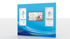 我们知道,会徽是冬奥会和冬残奥会最显著的标识,也是延承奥林匹克精神的重要文化载体,它不仅要具有美的属性,同时也传递着奥运精神与冰雪文化,还展现着主办国的传统文化与艺术风格。展品采用了全息风扇技术和视频介绍的方式进行展示,让观众了解会徽的样式及创作过程和理念。