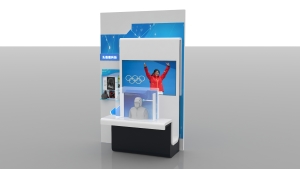 大家可以用力推动撞击杆,触发触控开关,观看屏幕中关于多向冲击防护系统技术头盔的介绍视频,更详细地理解这种保护运动员生命安全的头盔黑科技。