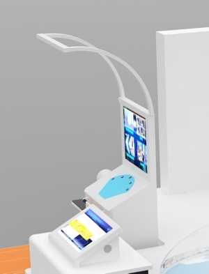 您面前的这件展品是体质检测一体机,它将身高体重测量仪、人体成分分析仪和健康管理融合在一起,利用双眼视觉识别系统,结合姿态动作识别算法,能够精准识别使用者的动作,实现安全快速体检和便捷管理个人健康数据的功能。