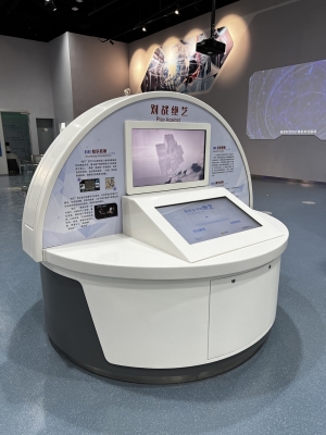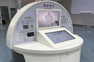 展品具有两个操作位,每个操作位由台面触摸屏、立面显示器、展台等组成,观众可以通过触摸屏与国内最先进的围棋AI腾讯“绝艺”进行对弈,立面显示器同步显示观众在台面触摸屏上对弈的过程和结果。通过观众与国内最先进的腾讯“绝艺”围棋机器人对弈的形式,在对弈过程中让观众感受到人工智能强大的计算能力和决策能力,激发观众对于人工智能的热情,促进其更深入地了解人工智能。