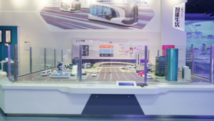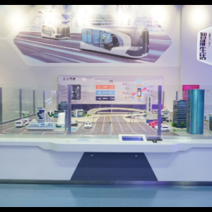 嗨,请看这边,这看似普通的小车,其实是无人驾驶汽车。无人驾驶车系统是一个集环境感知、规划决策和多等级辅助驾驶等功能于一体的综合系统,是充分考虑车路合一、协调规划的车辆系统,也是智能交通系统的重要组成部分。无人驾驶汽车能在无人控制的情况下,自主应对各种突发路况。我们先在主操作位的触摸屏上选择红色私家车的目的地,它会在沙盘上按规划路线向目的地行驶,我们可以通过屏幕看到它行驶的第一人称视角影像以及自动驾驶过程中传感器的作用和智能处理过程。同时,沙盘上其他私家车按随机路线行驶,公交车按公交车的路线行驶。我们可以通过展台两侧的操作位触发沙盘上的8个突发事件,给车辆制造路障,包括大树倒塌横栏马路,穿越马路的小动物,警车、消防车、救护车的出动等。这时,我们就会看到这些小车会自动做出相应的调整,例如掉头、停车等候,避让警车等。是不是很炫酷的技术呀?
