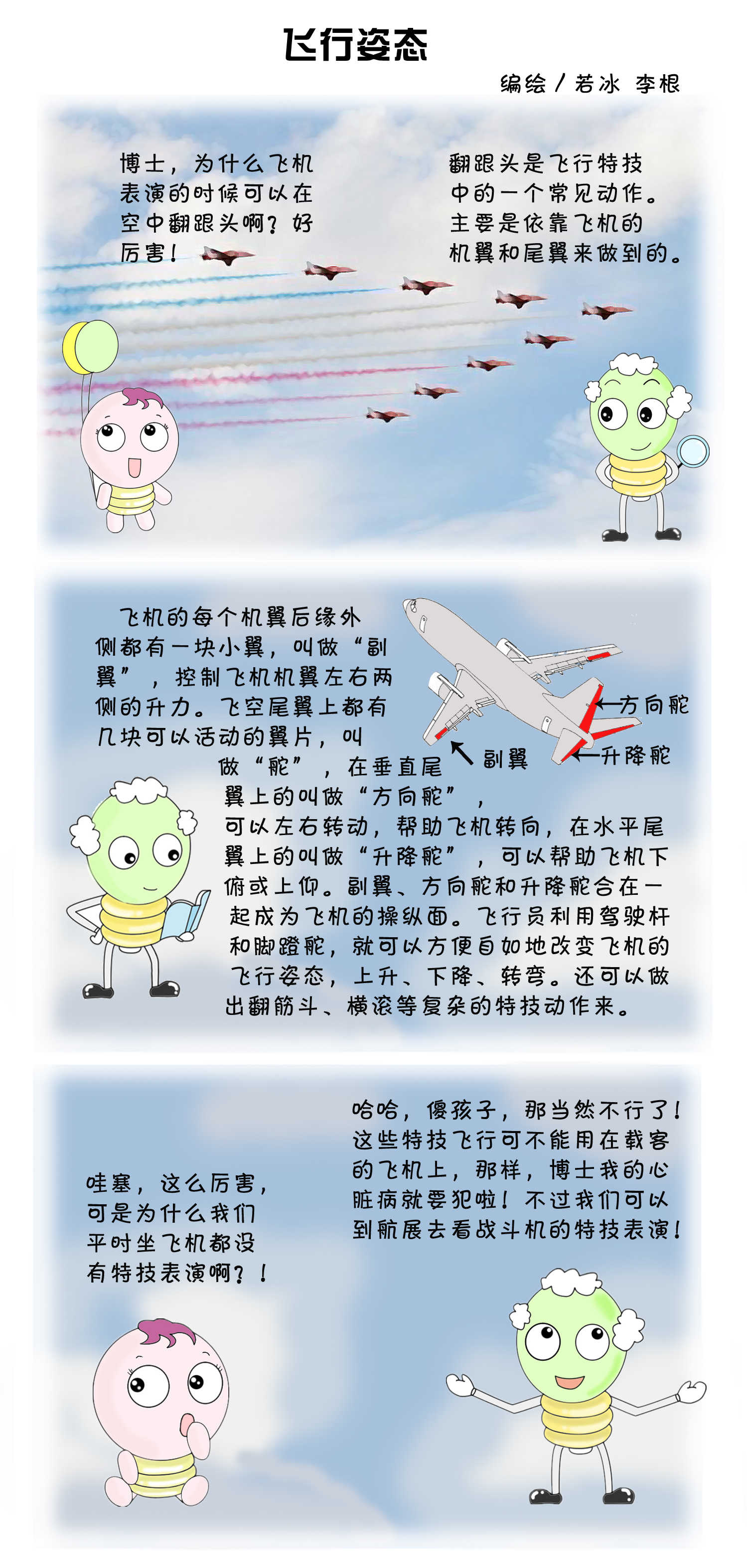 想要完成飞行姿态的调整是很复杂的,但是熟练的飞行员不仅可以完成简单的飞行任务,甚至可以做出翻筋斗、横滚等复杂的特技动作。