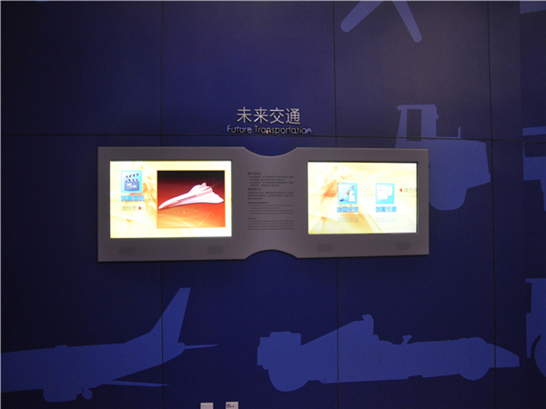 通过左侧的屏幕,观众可看到已有的设计图案。右侧屏幕上则包括“绘画未来”和“创意无限”两种互动体验方式。“绘画未来”为观众准备了五幅关于未来交通工具的精美设计作品,观众可选其中一幅作品,跟随屏幕引导模仿绘画一种未来的交通工具; 在“创意无限”中,观众可以创作并保存属于自己的未来交通工具。