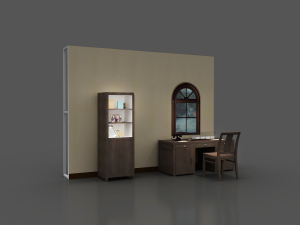 展品通过书柜造型、背景墙,营造了一个核武器研制的工作场景,书柜造型中设计了陈列物,结合透明屏,向观众展示了邓稼先、王淦昌、郭永怀等两弹元勋的故事,感受老一辈科学家热爱祖国,默默奉献的精神。