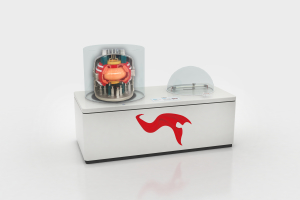 大家可以通过展品左侧的模型了解“人造太阳”的内部结构和运作原理。人造太阳,是一种利用磁约束来实现受控核聚变的环形容器。它的中央是一个环形的真空室,外面缠绕着线圈。在通电的时候,人造太阳的内部会产生巨大的螺旋型磁场,将其中的等离子体加热到很高的温度,以达到核聚变的目的。