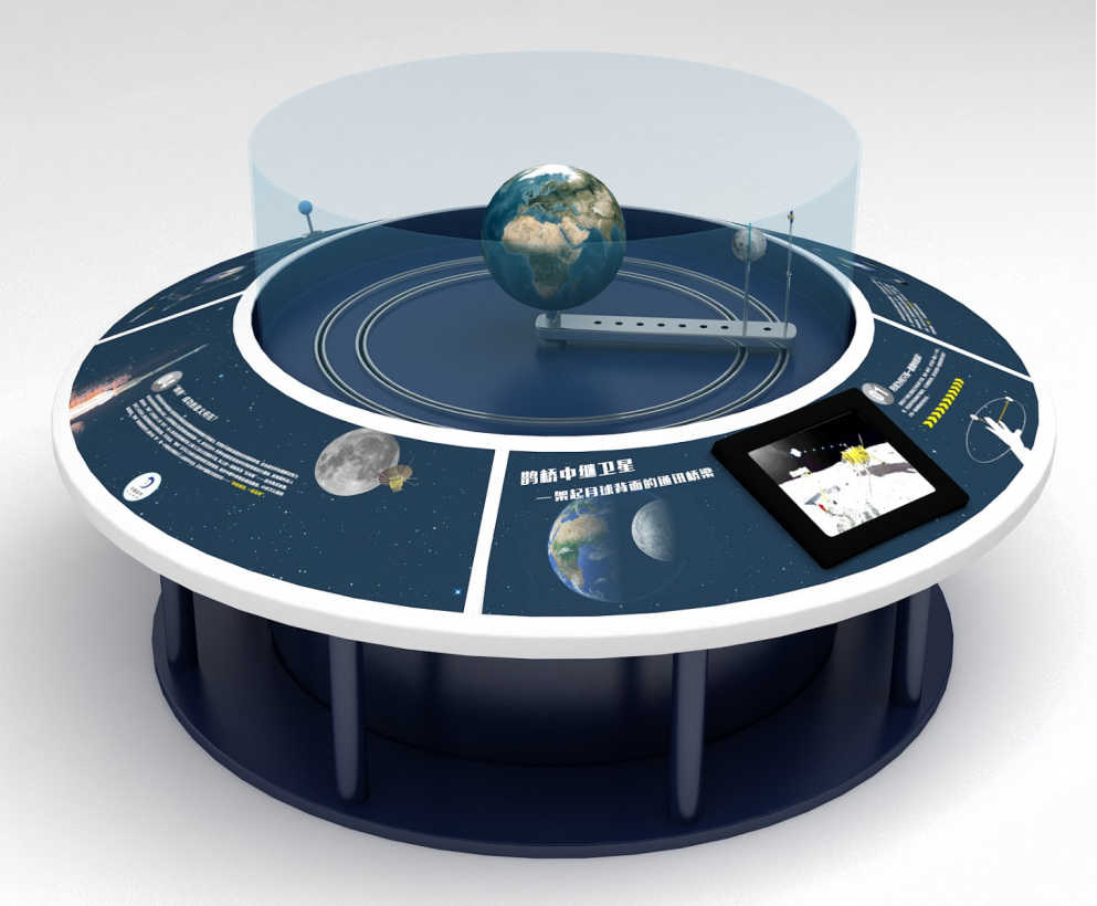 展品由嫦娥四号巡视器(月球车)模型、嫦娥四号任务视频等组成。通过观看嫦娥四号月球车模型及视频,使观众了解开展月球探测工作是我国迈出航天深空探测第一步的重大举措,将实现我国航天深空探测零的突破,其中“无人月球探测”阶段分为“绕”、“落”、“回”三步走,嫦娥四号首次实现月球背面巡视探测。