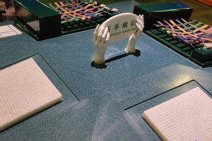 观众可以通过操作活动纬线按照编织图案来进行编织,就可以体验到中国传统手工艺编织的乐趣了。