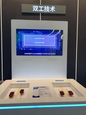 通过推动频分双工车模,互动结构带动另一车模进行相反方向运动;推动时分双工车模,互动结构带动另一车模进行相同方向运动,以模拟双工技术中移动通信业务的特点。屏幕配合展示双工方式的技术原理。