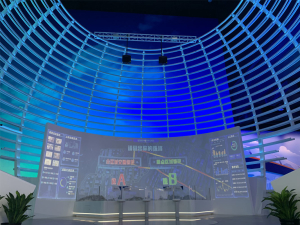 这件展品叫做“数字孪生城市”,前面的数字互动沙盘模拟真实城市状态,后面的墙面投影模拟城市IOC驾驶舱,前后相互映照,展示了数字孪生城市的运营场景,以及IOC城市驾驶舱的工作方式与价值。你可以通过沙盘前的交互触控屏查看智慧城市大脑的三个事件,激活互动体验情节。现在,请你观看剧情,使用投票台,跟随剧情进行城市管理决策吧!