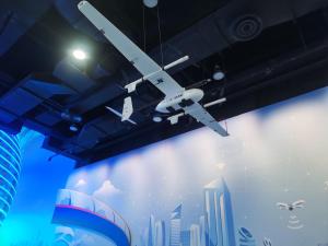 “5G网联无人机”是一件静态展品,它所呈现的是该无人机在空中作业时的姿态。