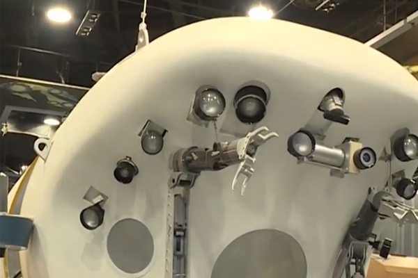 这件是展示智能并联机械手臂的展品,观众可以在前面的屏幕当中输入文字或图形,展台中央的机械手臂可以根据观众输入的内容将结果分析和处理成为点阵图形,然后再工作区域内自动的抓放拼图,拼出与观众输入的内容相一致的图案。这件展品通过互动的方式向观众展示新型的并联机器人的高速性和智能性。