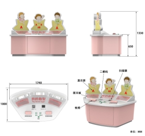 展品通过机电装置,让观众选择尝试亲子血型配对,认识子女的血型是由父母的血型决定的,初步了解血型遗传规律。展品由展台、两个四面柱体转筒、三个装有LED显示屏的人物模型(分别代表父、母、孩子)和电路控制系统组成。