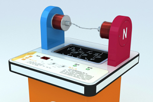 按下“通电”按钮,开始倒计时,在设定的时间内,完成搭接铁钉桥面;时间到电磁铁自动断电,也可通过“断电”按钮直接关闭。