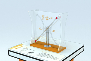 拨动直杆,会发现倾斜的直杆穿过有机玻璃板上弯曲的狭缝。