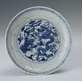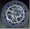 此盘器形规整,釉色俱佳,盘心双角五爪龙纹的一足画成六爪,外壁龙纹一足画成四爪,恐怕这是该盘落选的原因。元、明帝王使用的龙纹应是双角五爪,“龙凤呈祥”图案在明代为皇室专用。