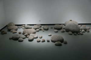 作品的外观呈现出石头的视觉特征,但当作品展开,人们得以在石头的内部一窥究竟,获得艺术语言与文化符号所带来的新的认知。如此双重的认知也促使人们深入思考文化符号所承载的意义和属性,以及种种变化的可能。