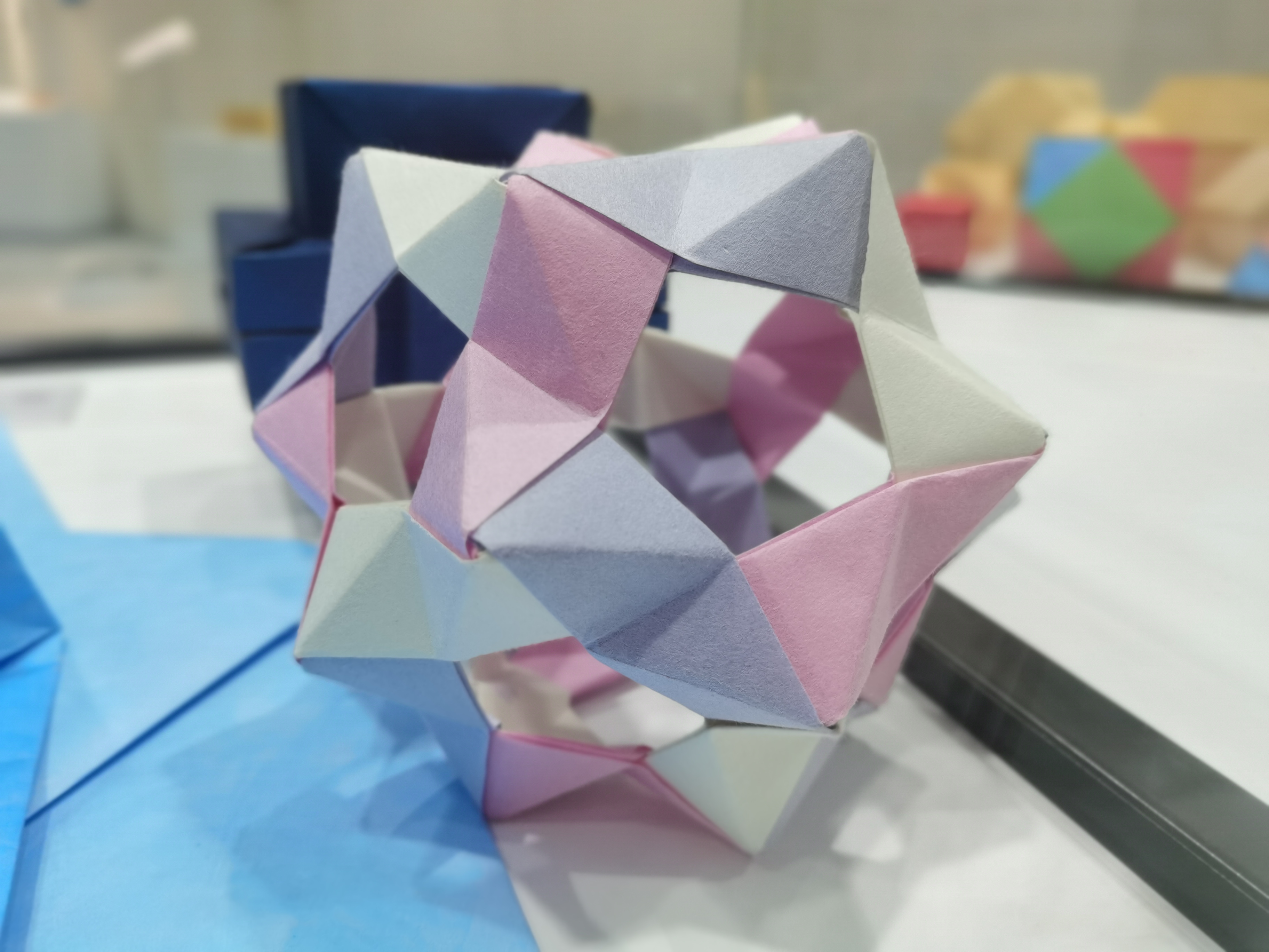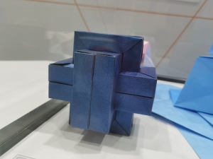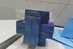 孔明锁亦称鲁班锁,它起源于中国古代建筑中首创的榫卯结构,榫卯结构其内部的凹凸部分啮合十分精确。用折纸模拟的鲁班锁,简化了凹凸部分的啮合,但从整体可以体现出组合拼插的巧妙。